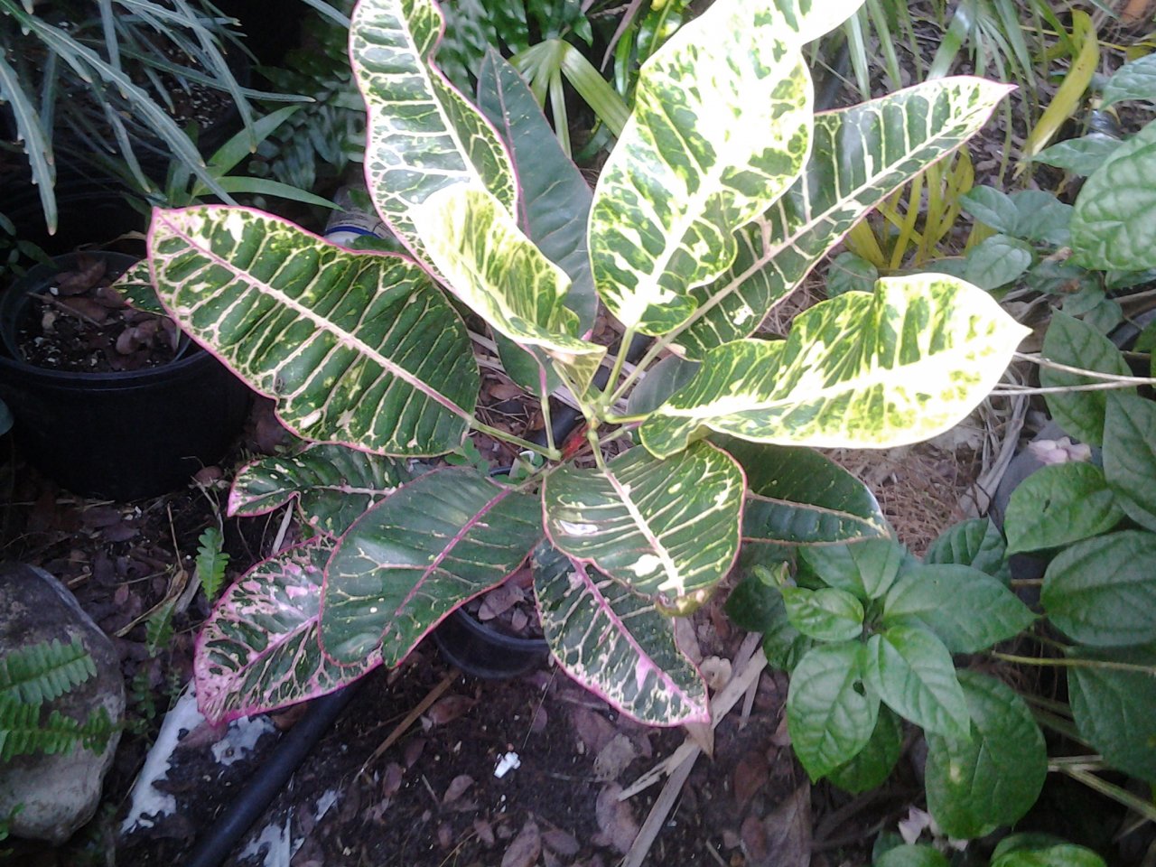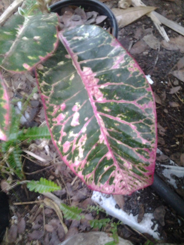 As far as sun exposure, I can only go by Mike's recommendation. He told me if it was left heavily shaded, I would get large leaves but not much pink colors. If you give it some sun, you'll get smaller leaves but some very nice pink colors. Sun exposure is relative. Mike is very familiar with my garden and knows its pretty well shaded. His suggestions were probably based my garden conditions. The mahogany tree area seems like a good spot except for the strong afternoon sun scenario. Strong afternoon sun could wash out the colors. Perhaps if you planted of fast growing croton just to the west of Pink Davis, it could provide some relief from the strong afternoon sun rays.