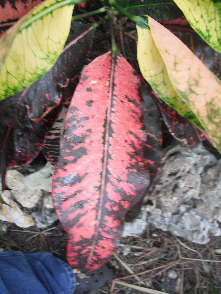 Rafael enjoys a shaded aspect. My croton has larger leaves than my Claude Lorraine with less pronounced lobes. It also exhibits deeper pastel pinks than Claude Lorraine