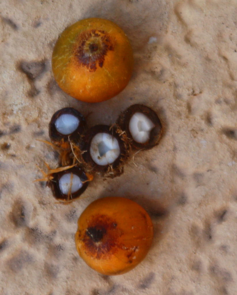 Steve, Look close in the center of this picture. There is a one leaf seedling growing out of the boot of the Butiagrus that I got the offspring from. I think I need to get up there and get it out to grow it on. No other palm close so it may have produced another baby.