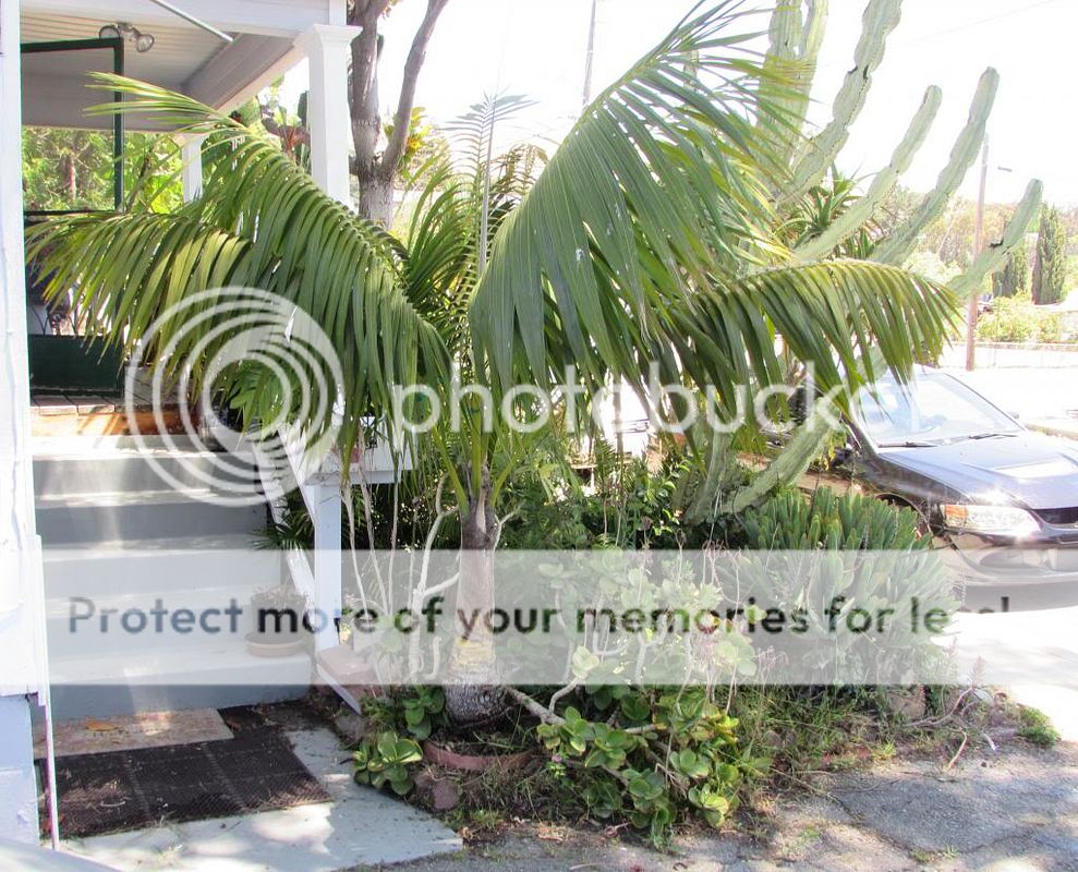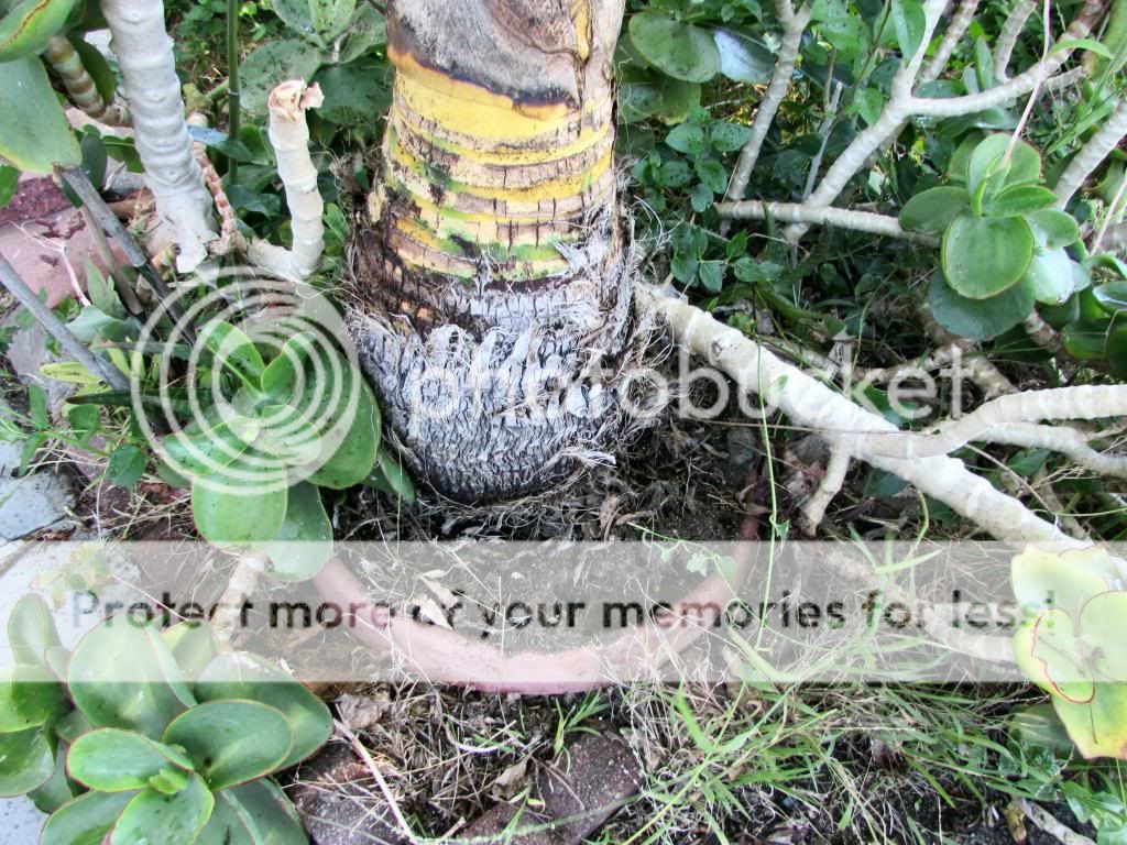 To make a long story short.. I planted this from it former spot on my porch using the "With pot" method. Years later,I realized I took it TOO literal..not having slit the pot,or enlarge holes,etc. Now,I have a bottle Howea much smaller all around then a big one in my backyard. The rings on this guy are miniscule too.