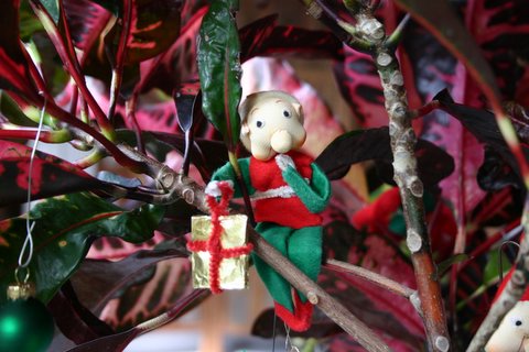 The card is very nice and the elf holding the box with the ring inside was great. The croton tree, well, I can pass on that. I'm just so traditional and love a nice Christmas tree. But beautiful pictures. Thanks,