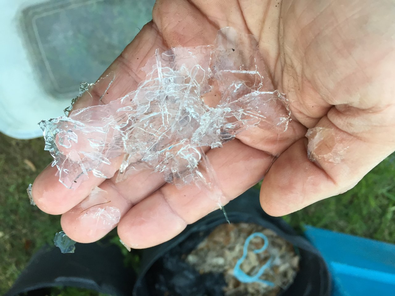Piece of Three toe in Elanor Roosevelt ....Exotica moved 20 ft landed upright with only 2 half leaves left .... Come on April ...........