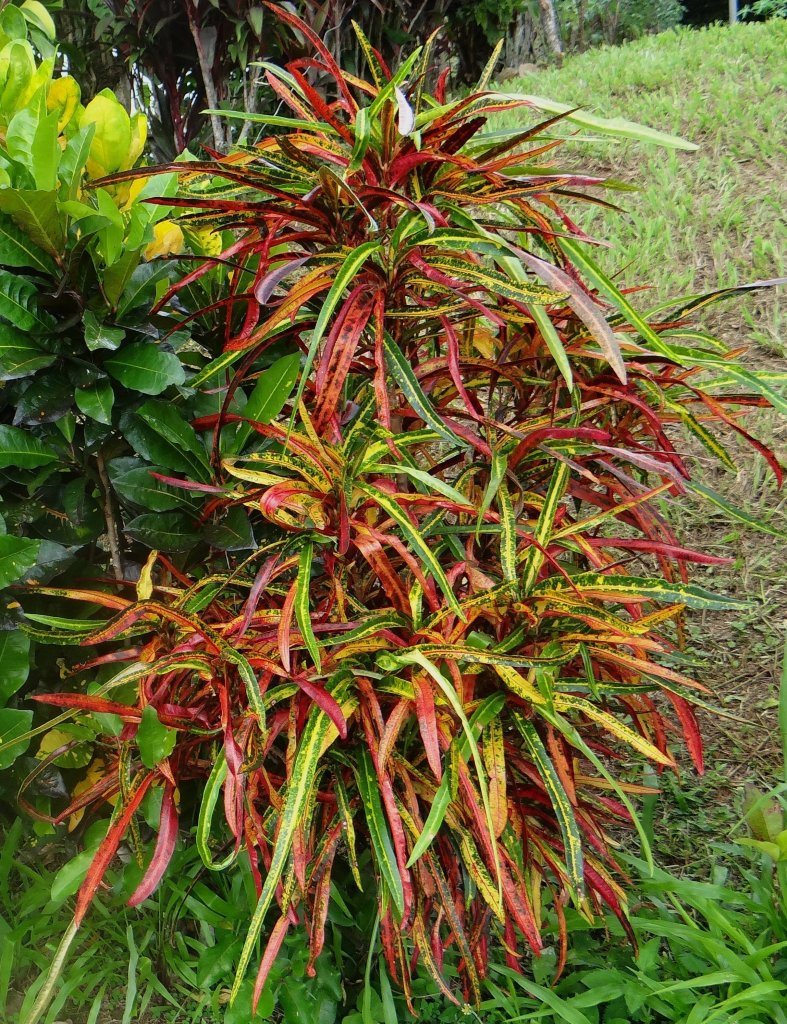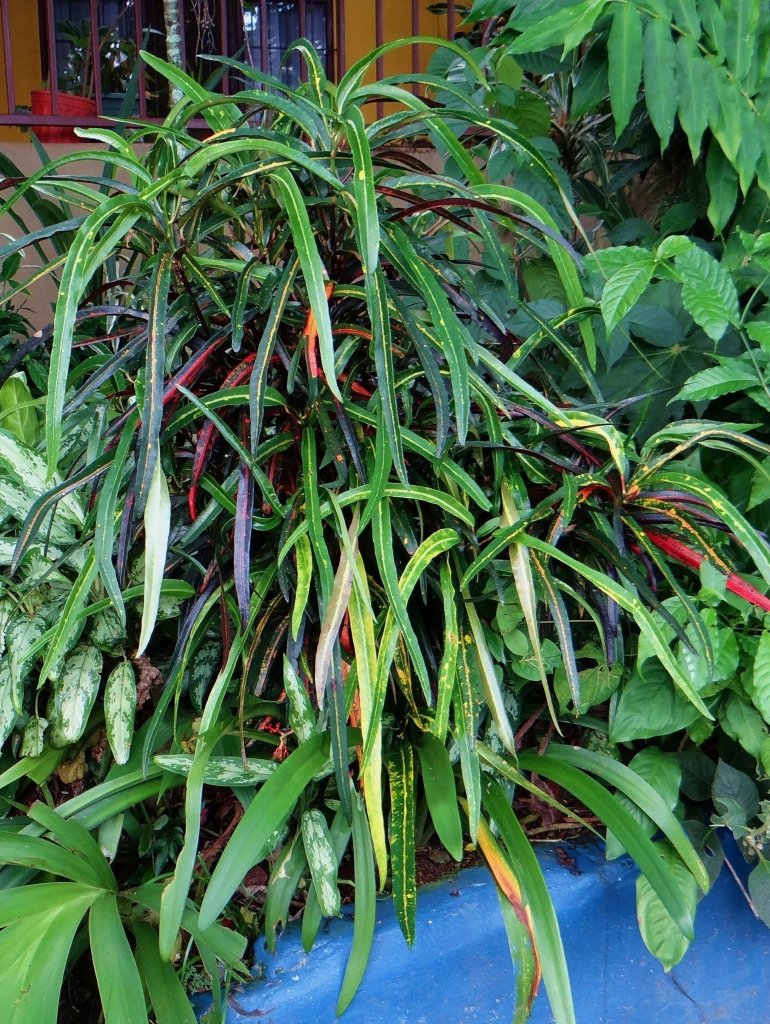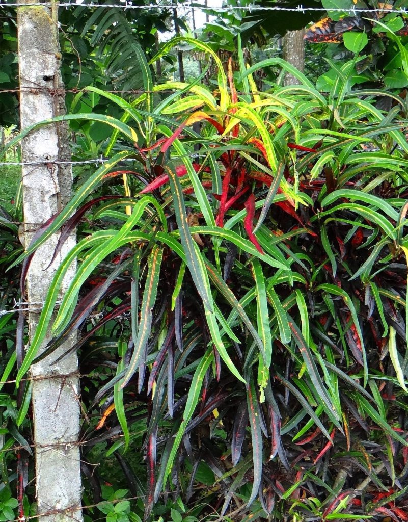 “Long, narrow leaves, yellow midrib; bright red with age.”REF: Reasoner's Tropical Nurseries inc, croton listing. Group 1, Common Varieties, p.2.
