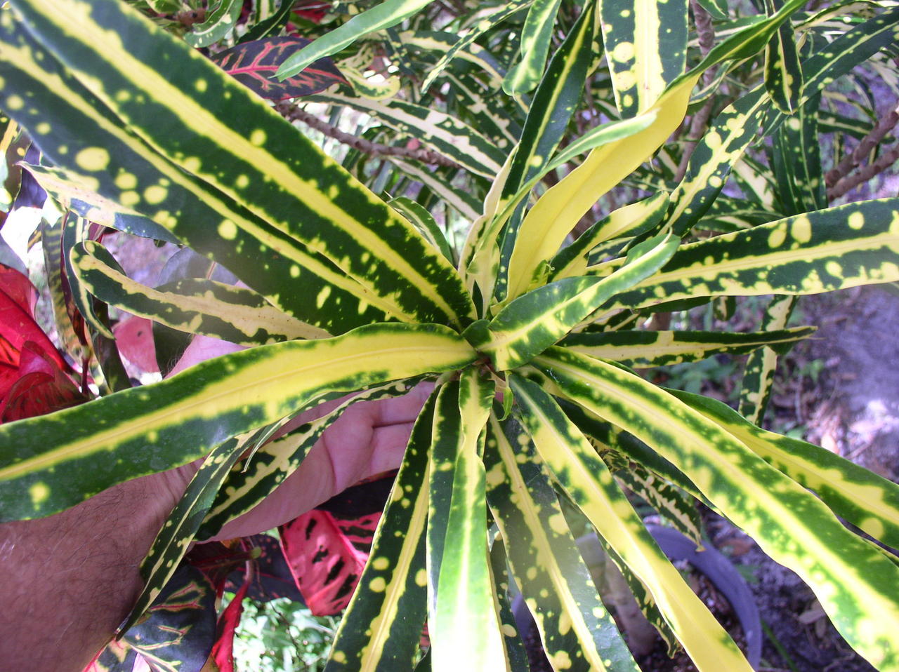 I bought some unnamed crotons some years ago from the Croton Society booth at either USF at Tampa or Selby Botanic Garden. Some names are obvious, like Ovalifolium, Franklin Roosevelt, but other IDs have confounded me. I'll attempt to post pics.