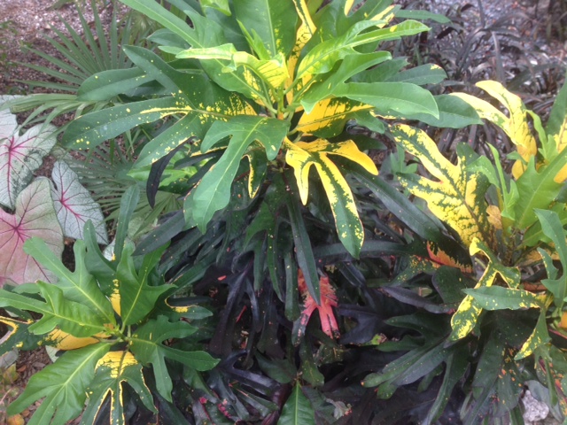 This one is a fast and robust grower, yellow splotches near the base of the veins eventually turning pink. Needs medium light to look best. Mine is big, ready for air layers in the spring.